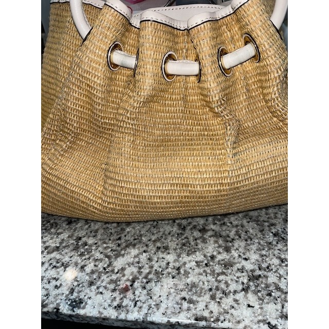 Add effortless sophistication to your wardrobe with this Michael by Michael Kors Natural Straw Satchel Bag. Featuring a chic, summery design with signature Michael Kors craftsmanship, this handbag blends casual elegance with timeless appeal. Perfect for everyday outings, travel, or warm-weather style.